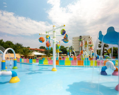 Рецепција, Wi-Fi интернет, лоби бар, билијард, детски базен, детски забавен парк, хидромасажа, масажа, мини маркет, отворени базени, паркинг, сауна, спа и велнес центар, пинг-понг, отворени тениски игралишта, одбојкарско игралиште, теретана, внатрешно пливање базен, хотелска плажа, чадори и лежалки на плажа, 3 барови.